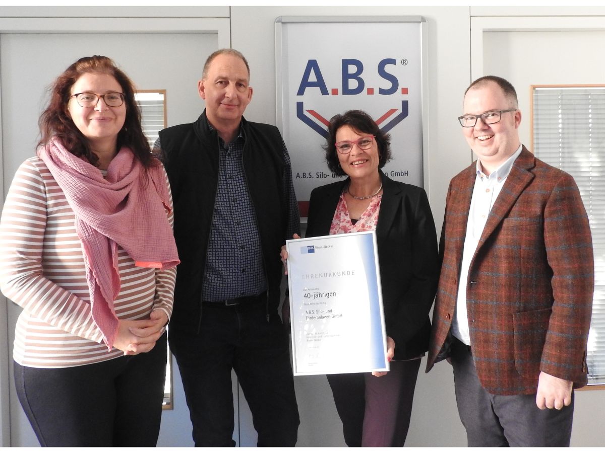 A.B.S. can look back on an eventful 40-year history. As a sign of recognition, we have received a certificate of honour from the Chamber of Industry and Commerce. 🥳