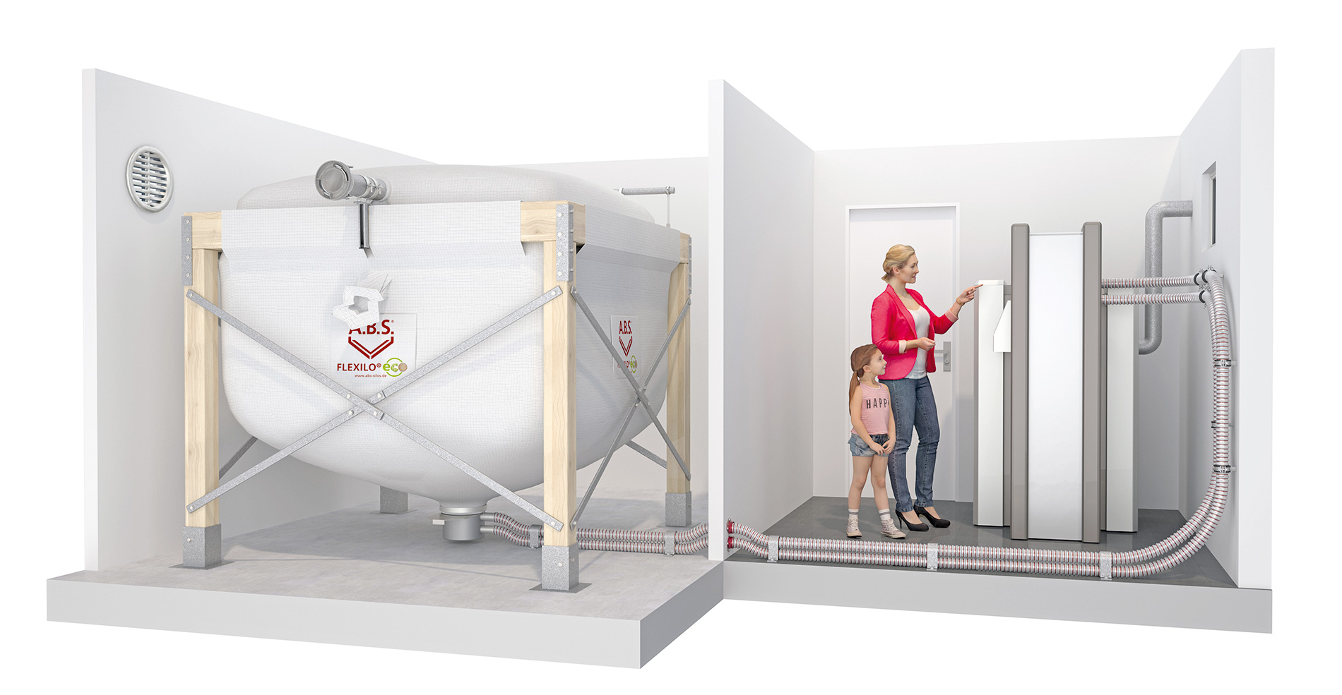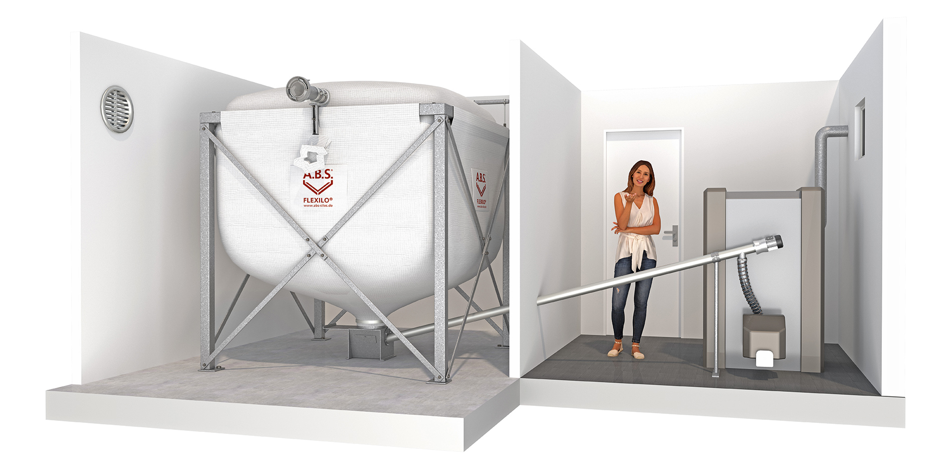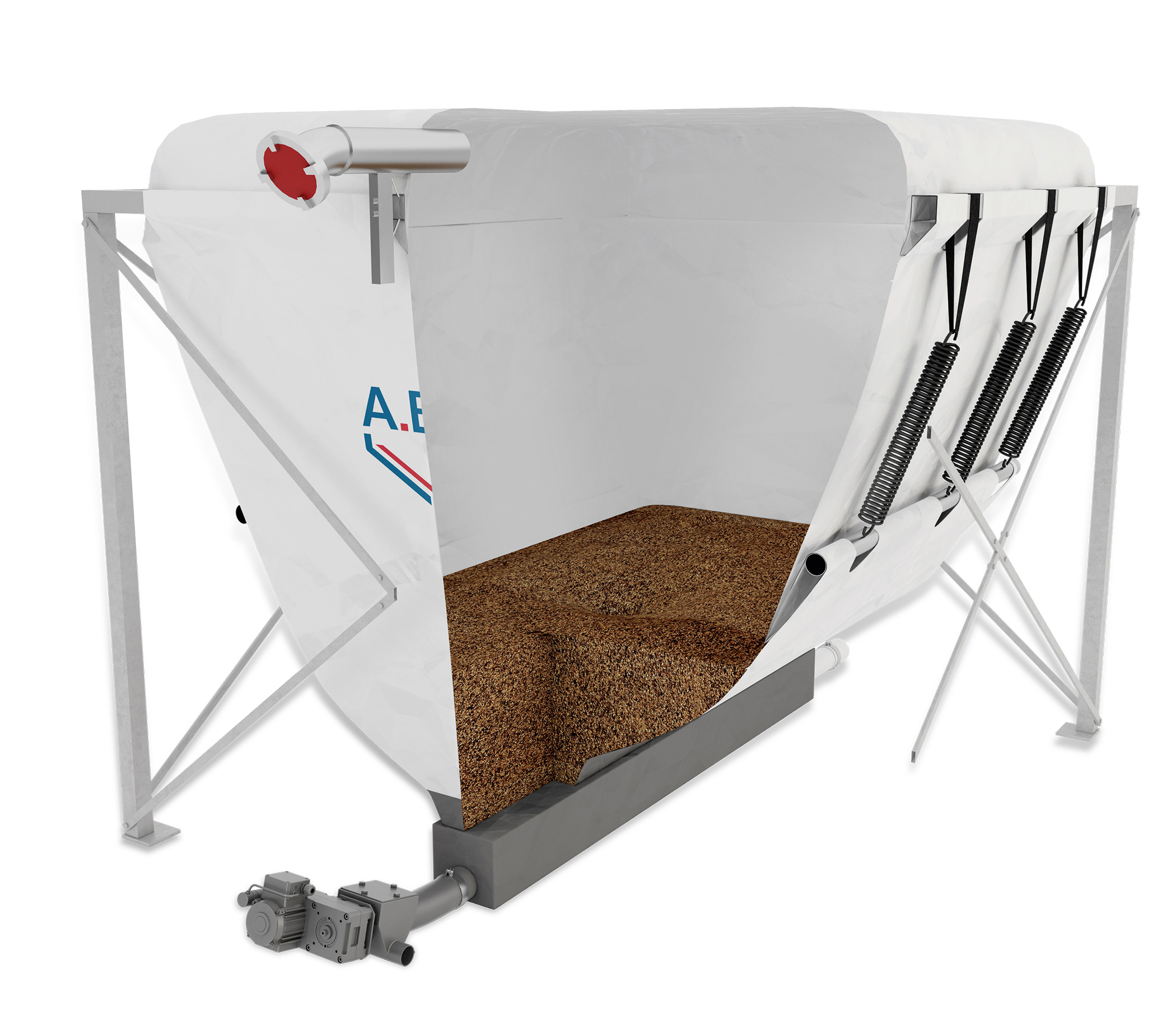 Thanks to the air-permeable fabric, no condensation forms during temperature fluctuations. Delivered compact, your A.B.S. Fabric silo even through the narrowest door and can be set up there quickly and easily – in order to safely store and have ready the fuel for sustainable energy in the future.