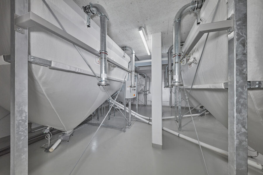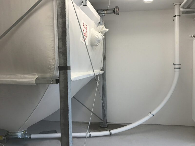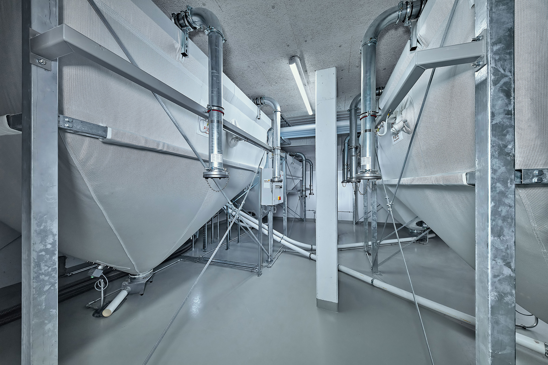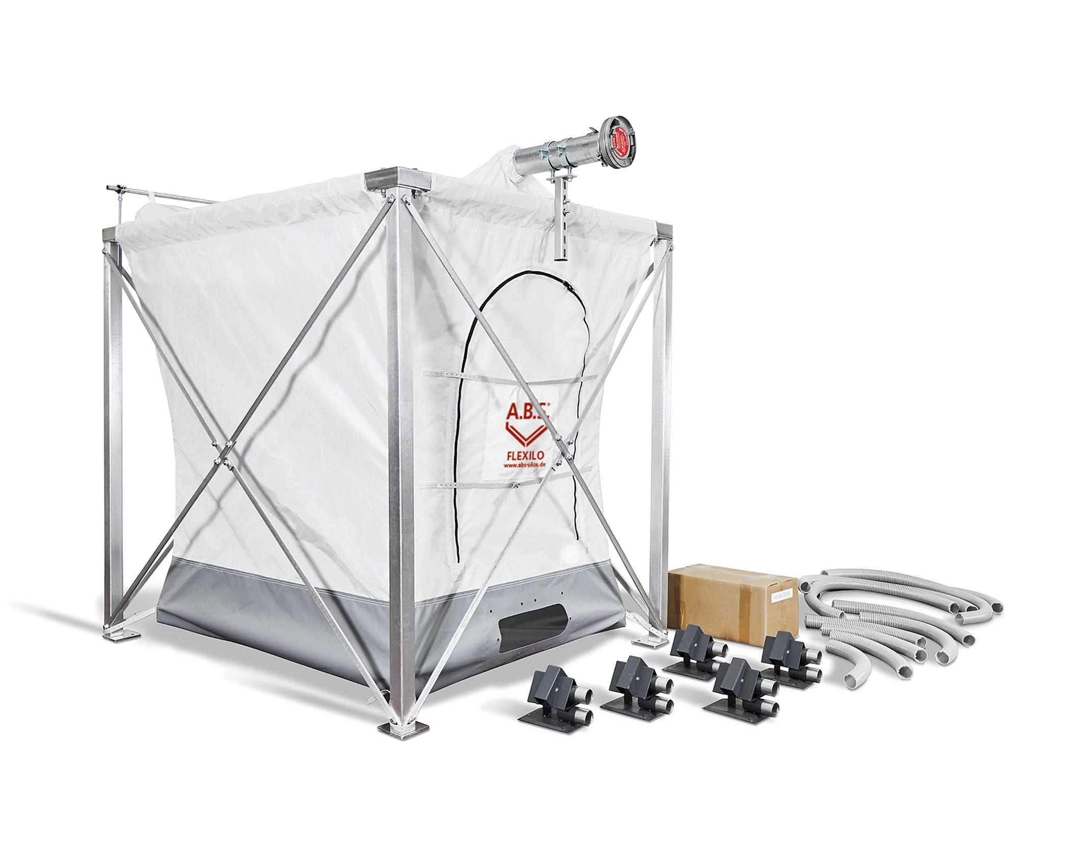 Thanks to the air-permeable fabric, no condensation forms during temperature fluctuations. Delivered compact, your A.B.S. Fabric silo even through the narrowest door and can be set up there quickly and easily – in order to safely store and have ready the fuel for sustainable energy in the future.