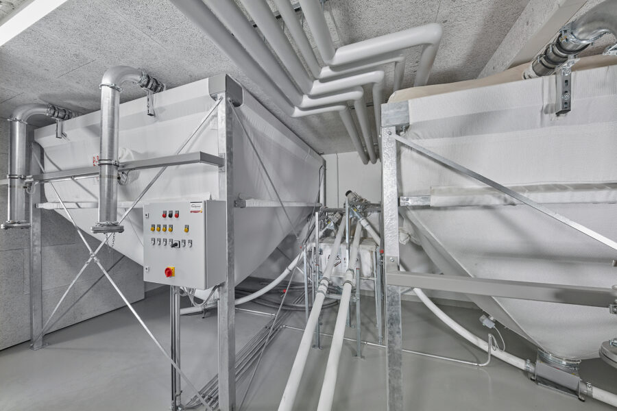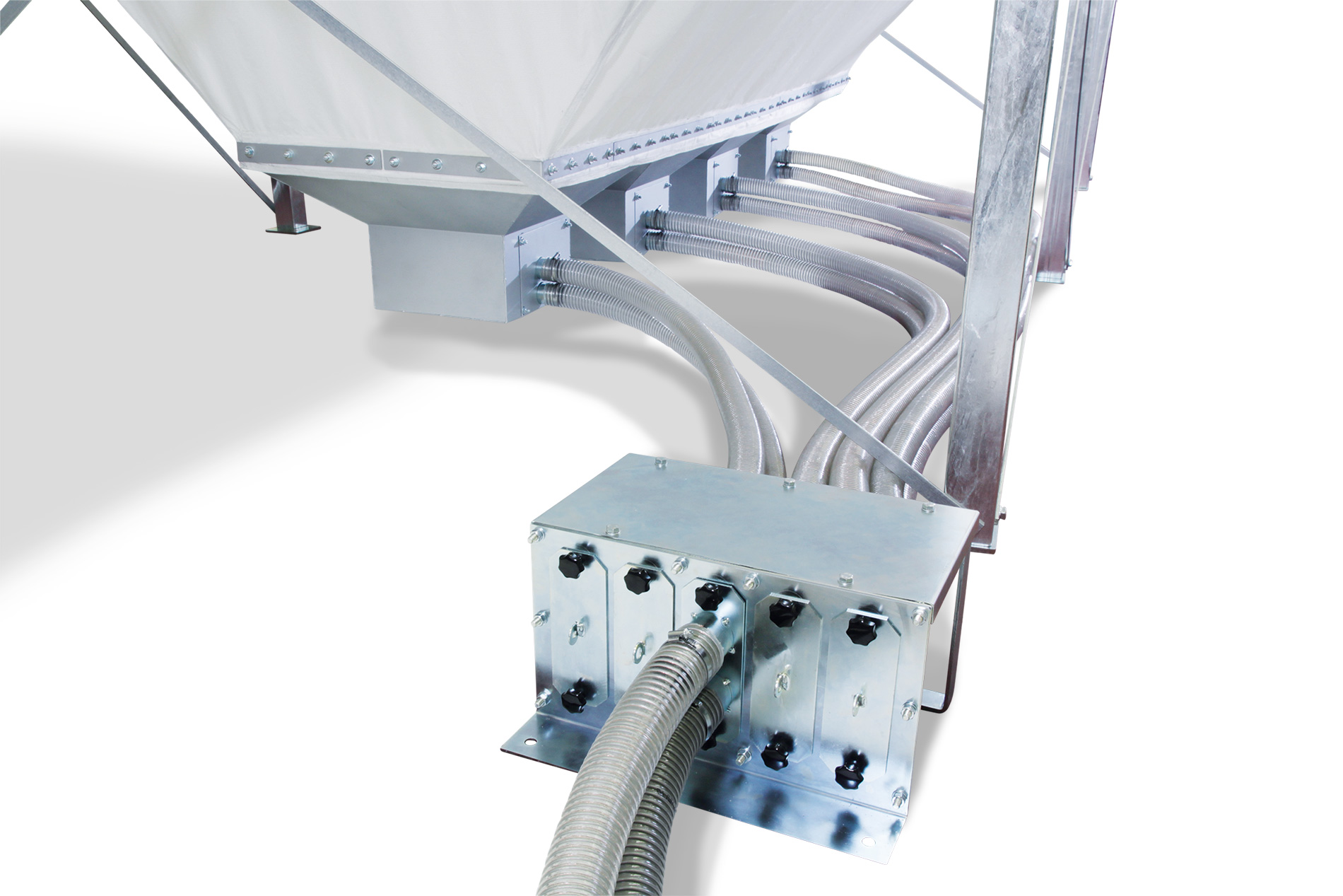 With rectangular silos, the filling line is located on the narrow side as standard. From a frame width of 2.5 m, 2 filling lines are included in the scope of delivery.