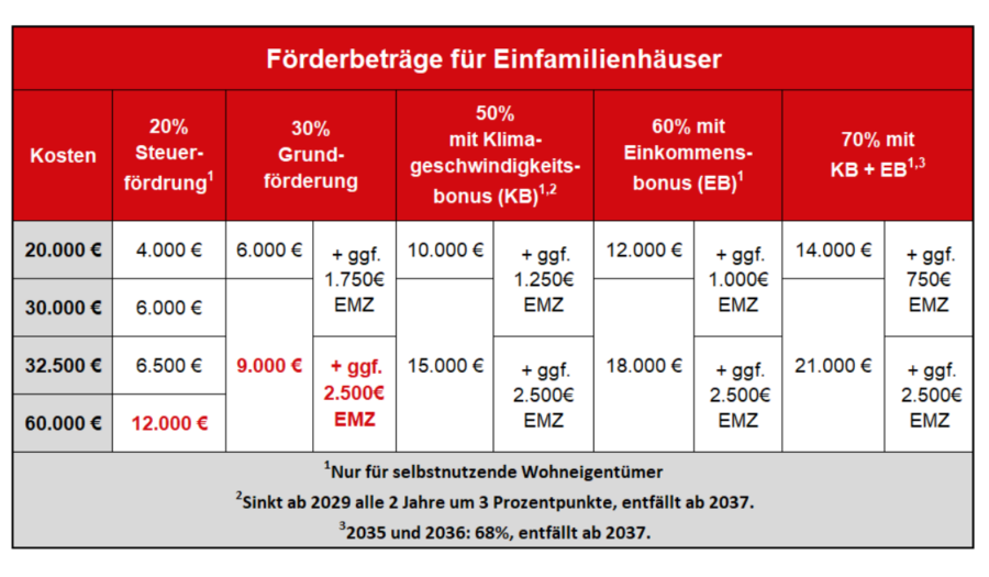 ACHTUNG: Die Grundförderung und die verschiedenen Bonusförderungen lassen sich miteinander kombinieren – bis zu einem Fördersatz von maximal 70%.