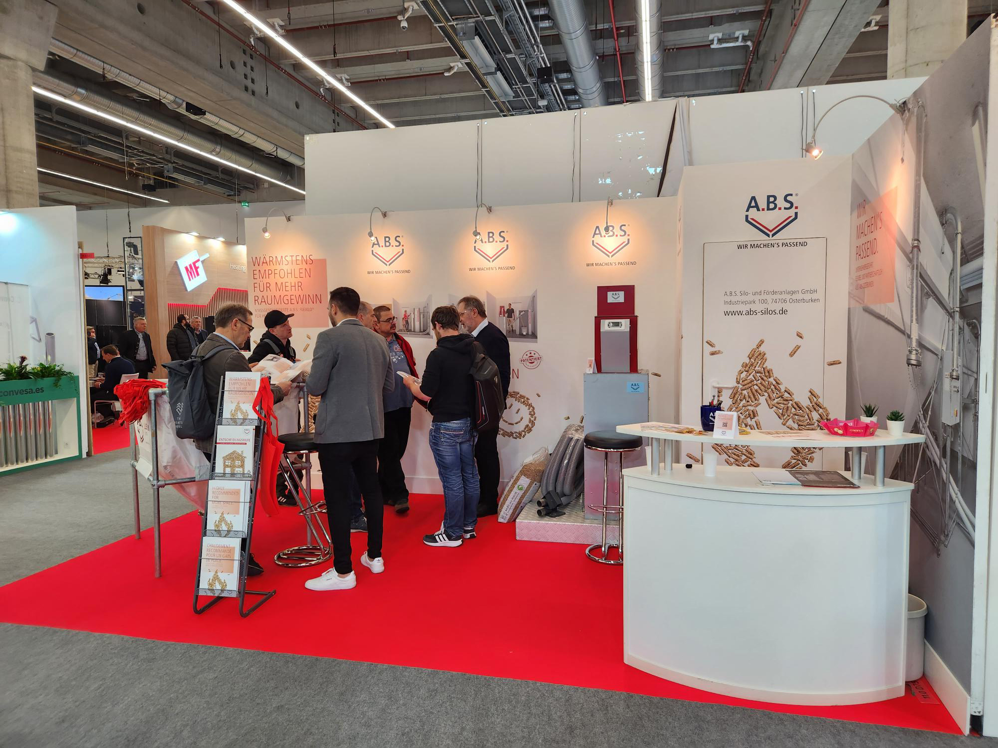 Auch das Team von A.B.S. freute sich, den Profis aus Handwerk, Fachgroßhändlern, Architekten und Entscheidungsträgern aus der nationalen und internationalen Sanitär-, Heizungs- und Klimabranche eine Auswahl ihrer hochwertigen Produkte zur Lagerung und Förderung von Holzpellets zu präsentieren: