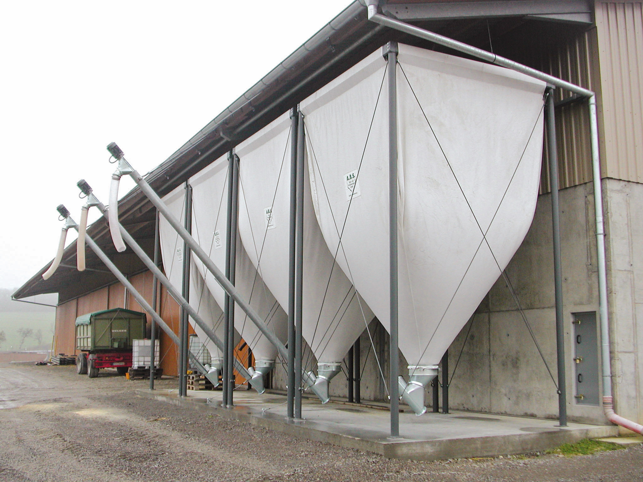 - Wir produzieren alle Futter- und Getreidesilos aus unserem atmungsaktivem Gewebe, das zuverlässig vor Schimmelbildung schützt. Bei der Lagerung von Mineralstoffen kommt unser beschichtetes Gewebe zum Einsatz. Für die Außensilos setzen wir ein beidseitig beschichtetes Gewebe ein.