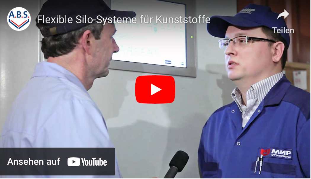 W pierwotnej hali producenta dodatków woskowych znajdują się teraz dwa nowe silosy na granulat z tworzywa sztucznego firmy A.B.S. – w nowej hali zainstalowano pięć kolejnych. Wszystkie silosy flex są wykonane z niepowlekanej, wysokowytrzymałej i przewodzącej elektrycznie tkaniny poliestrowej i zawieszone w stalowych ramach. Każdy z nich wyposażony jest w detektor poziomu, technologię ważenia oraz worki filtracyjne wykonane z filcu igłowanego. O ile w silosach rolniczych i silosach na pellet drzewny wykonany z tkaniny, o tyle do filtrowania zwykle wystarcza pokrywa silosu, tutaj konieczne były worki filtracyjne, aby zwiększyć powierzchnię filtra. Umożliwiają one ucieczkę powietrza transportowego bez pyłu. Dane z czterech czujników wagowych każdego silosu elastycznego są analizowane w szafie sterowniczej, a wynik ważenia jest wyświetlany na panelu dotykowym. Te siedem silosów surowcowych służy jako silosy magazynowe i zabezpiecza dostawy materiałów do dalszego procesu.